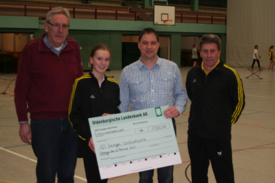 Georg Iding als Vertreter des Sportförderkreises einen Scheck von